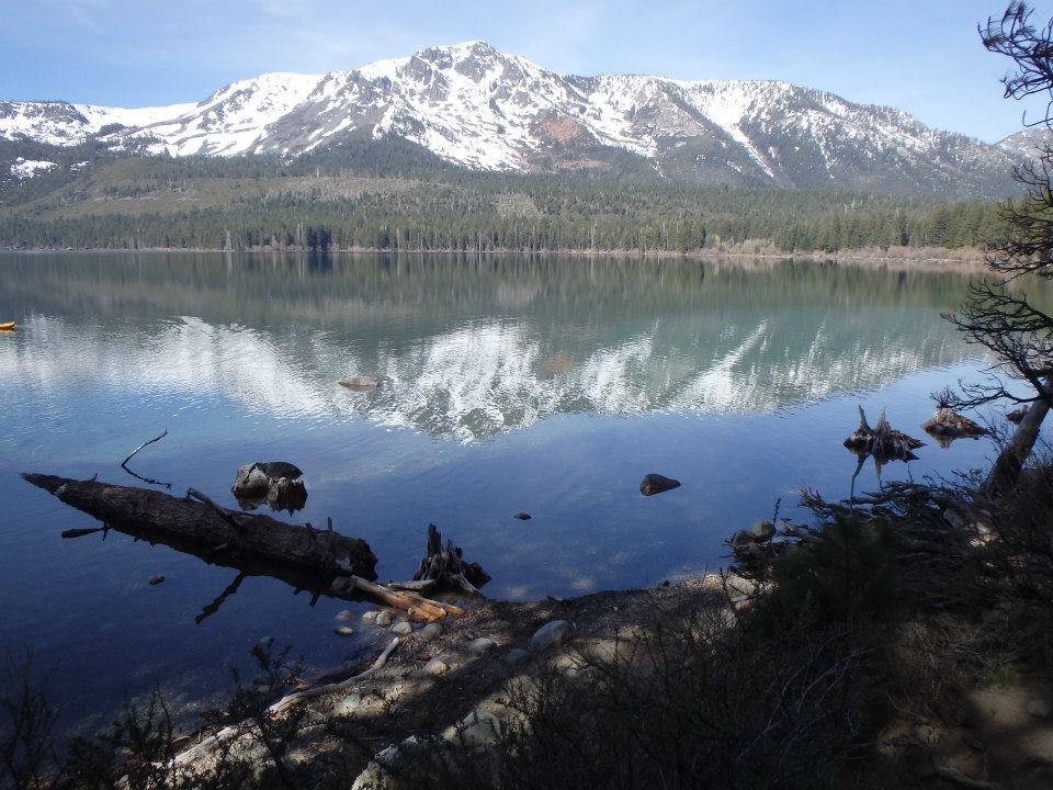 She began to slowly walk along the shallow spots, crossing the river. As she crossed, she spied a fallen tree which cast a beautiful reflection in the river. She navigated her way around it, capturing several shots with her camera.